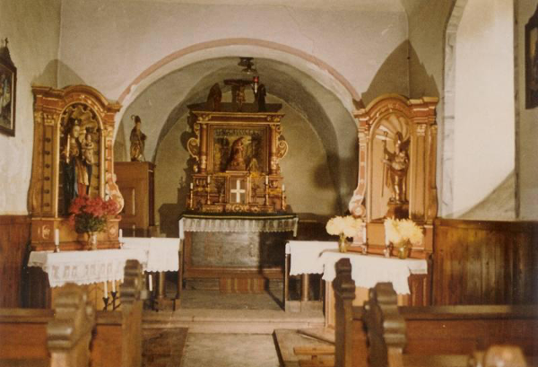 Als Patron ist 1543 der Hl. Servatius genannt. 1687 erhielt die Kapelle Reliquien des Hl. Germanus, dem 1775 ein Altar errichtet wurde. Der Hauptaltar stammt aus dem Jahre 1776. Er zeigt im Rahmen die Hl. Maria Magdalena (die Büßerin) vor einer Felsenlandschaft, auf den Seiten kleine Statuen der Mutter Gottes und des Evangelisten Johannes. Der zweite Seitenaltar stammt ebenfalls aus der Renaissancezeit und zeigt als Standbild Maria mit dem Kinde.